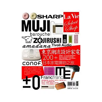 本期Select Shop精心介紹了去東京必買的潮流設計家電200件,深度介紹品牌故事、產品設計、旗艦店位置……,從風格獨特的廚房家電,到點綴室內設計概體的風格家電小物,從來沒想過,電話、吸塵器、燈具……超值推都能這麼特別可愛!本書更介紹在日本享有大人氣,同樣值得推薦的歐美品牌設計家電,除了精美的圖說之外,每ㄧ件產品的極簡風格都絕對挑起你的購物慾望!更請來五位日本設計大師,包括設計領域橫跨建築與產品設計的鄭秀和、替家電鋼硬材質加入柔軟線條的柴田文江、總把童心趣味帶入設計的喜多俊之、將哲學思維?入設計理想的?井直樹,以及最受期待的年輕設計師坪井浩尚,五位設計師共同講述各自的家電設計理念,從大師對談預測未來設計趨勢!作者簡介網路熱賣商品流行《La Vie》編輯部上班族省錢大作戰超值推薦熱銷商品推行設計不遺餘力,設計是時尚、是知識、是生活、是娛樂。第一本設計理想生活的美學實踐誌,《La Vie》從消費者的需求與慾望出發,導引讀者了解、欣賞進而懂得消費彰顯個性的好設計,協助讀者找到美感的體驗、 醞釀自己的品味。好書推薦撿便宜購物抗漲好康活動商品訊息簡述: