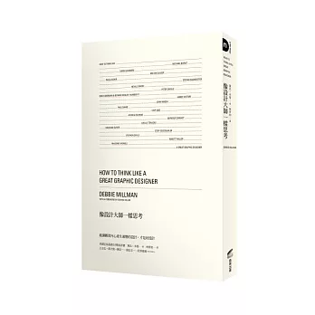 7.美國亞馬遜5顆星評價 深入設計書訊,歡迎至新設計書系BLOG: neocreative.pixnet.net/blog 作者簡介黛比.米曼 Debbie Millman在設計產業工作逾25年的資深品牌顧問,是純銀品牌顧問公司(Sterling Brands)的合夥人,並擔任其設計部主任,「純銀」是美國知名品牌識別公司,服務的客戶多為知名企業如百事可樂、嬌生集團、吉列、輝瑞藥廠、康寶、多芬、漢堡王等等,黛比.米曼在此一展其策略行銷專長以及滔滔雄辯的口才。黛比另主持有線上脫口秀「設計有關係」(Design Matters),也是極受歡迎的視覺藝術論壇,以其敏銳機智的風格和深入精闢的解析內容躋身為設計報導界的意見領袖。黛比.米曼目前是美國平面設計協會(AIGA)的委員,並在設計部落格「大聲說」(Speak Up)上不定期發表文章,同時在美國前三優秀的紐約視覺藝術學院(SVA)擔任講師。現居紐約。個人部落格debbiemillman.blogspot.com/ 譯者簡介林育如國立台灣大學歷史系學士,美國喬治華盛頓大學博物館學研究所碩士。熱愛人文藝術和大自然,專長是思考怎麼樣才叫「過生活」並且具體實踐,近年來對養兒育女也漸有心得。曾經接受過金融業與高科技業的洗禮,現在則悠游於文化創意、語言文字、和柴米油鹽的世界。曾為國家地理頻道、Discovery Channel翻譯字幕,目前為多家企業特約譯者,並譯有《男人就是搞不懂》、《走出傷痛》等書。設計大師簡介1.麥可.貝汝 Michael Bierutwww.pentagram.com兼具設計師、設計評論人及教育者身分的麥可.貝汝,美國俄亥俄州人,畢業於辛辛那堤大學設計、建築、藝術及規畫學院。曾任Vignelli聯合事務所(主持人為設計大師馬西莫.維格涅里)的平面設計部副總,一九九○年加入五角星設計公司成為合夥人,並任教於耶魯大學藝術學院。一九九八至二○○一年,擔任美國平面設計協會(AIGA)主席。曾贏得無數大獎,作品並為許多美術館收藏,包括美國紐約當代藝術館、庫珀休伊特設計博物館、舊金山當代藝術館、德國漢堡藝術與工藝博物館等。長年為雜誌及網路媒體撰寫評論文章,自九○年代起陸續主編出版《仔細瞧》(Looking Closer)系列多本書籍,深入評析平面設計的各個層面。二○○七年出版《79 Short Essays on Design》一書。與Rick Poynor、William Drenttel等人共同成立知名設計部落格「設計觀察員」。2.卡倫.戈柏(Carin Goldberg)caringoldberg.com美國紐約人,畢業於古柏聯合藝術學院。一九八二年自組設計工作室前,曾經服務於CBS電視、哥倫比亞唱片及華納唱片公司,極為嫻熟影視唱片業。自組同名工作室這二十多年來,卡倫經手多家美國知名出版社的書籍設計,包括藍登書屋(Random House)、柯諾夫出版社(Alfred A. Knopf)、Simon & Schuster,、、Farrar Straus & Giroux、Harper Collins、Doubleday等,當然這期間也同樣持續唱片封套設計。負責過多位重量級作家及藝術家的作品,包括馮內果、蘇珊?桑塔及瑪丹娜等。她為喬伊斯作品《尤里西斯》所設計的書籍封面,更成為後現代設計的經典作品。近年她更將領域擴延至出版規畫及品牌顧問,服務客戶包括「瑪莎史都華生活媒體公司」。二○○三至二○○四年,受邀至時代華納集團旗下的時代客製出版公司(Time Inc. Custom Publishing)擔任創意總監,為紐約證交所、微軟及花旗等知名公司設計規畫出版品。3.米爾頓.葛雷瑟(Milton Glaser)www.miltonglaser.com一九二九年生,古柏聯合藝術學院畢業後,再赴義大利波隆納取得藝術學院的學位。一九五四年共同成立極具革命性的「圖釘」工作室;一九六八年與Clay Felker共同成立《紐約》雜誌;一九七四年成立米爾頓.葛雷瑟設計公司;一九八三年與Walter Bernard合作成立出版設計公司WBMG。著名的「我愛紐約」標誌即為其作品,是美國當代極具重要地位的平面設計師之一,在巴黎龐畢度中心及紐約當代藝術館等地都曾舉辦個人設計展,作品並為多家美術館收藏。葛雷瑟在平面及教育界都具有一定影響力,曾發表大量相關文章,並於紐約古柏聯合學院及紐約視覺藝術學院任教。二○○四年獲庫珀休伊特設計博物館頒贈「終身成就獎」。二○○八年最新出版書籍《Drawing Is Thinking》。4.寶拉.雪兒(Paula Scher)www.paulascher.comwww.pentagram.com網購人氣產品一九四八年生,畢業於費城泰勒藝術學院(Tyler School of Art),並授頒華盛頓可可然藝術設計學院(Corcoran College of Art and Design)榮譽藝術博士。七○年代時,主要為亞特蘭大唱片公司及哥倫比亞唱片公司設計唱片封套,並曾獲得葛萊美唱片設計獎。一九八四年自組工作室Koppel & Scher之前,曾服務於Time Inc.。一九九一年加入五角星設計公司成為合夥人。曾多次獲得包括美國平面設計協會、字體指導俱樂部、藝術總監俱樂部名人堂等組織頒發的獎項,作品為紐約當代藝術館、庫珀休伊特設計博物館、巴黎法國國家圖書館、龐畢度中心、丹佛美術館等永久收藏,並出版多本著作。除了專精於平面設計領域,她同時是一位以創作大型動態地圖視覺版畫著稱的藝術家,二○○八年發表了名為《中國》的限量版畫,展現氣度恢宏但深邃細膩的創作風格。特價產品5.史蒂芬.塞格麥斯特(Stefan Sagmeister)www.sagmeister.com一九六二年出生於奧地利布雷根茨(Bregenz),畢業於維也納應用藝術大學,後來拿到Fulbright獎學金到紐約普瑞特設計藝術學院攻讀碩士。一九九三在紐約成立Sagmeister Inc.設計公司,合作過的客戶包括滾石合唱團、路瑞德、HBO到古根漢美術館。曾五度獲